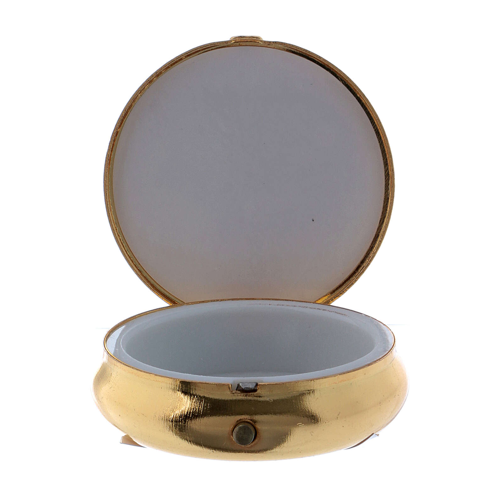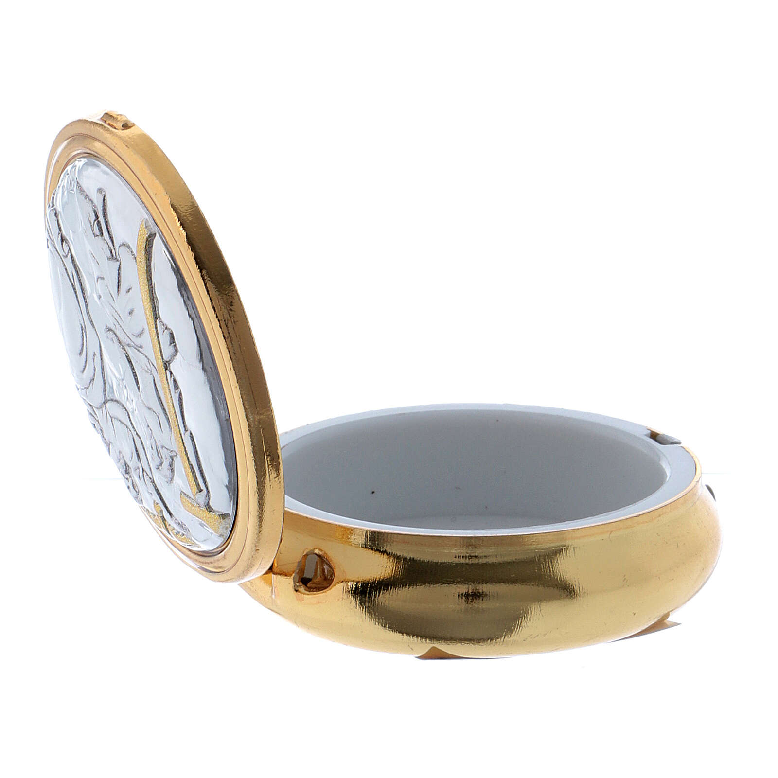 Versehpatene Messing Dreieinigkeit Bild Aluminium Platte 5cm. Versehpatene realisiert aus vergoldeten Messing und verfeinert mit Bild der Dreieinigkeit auf einer Aluminium Platte.