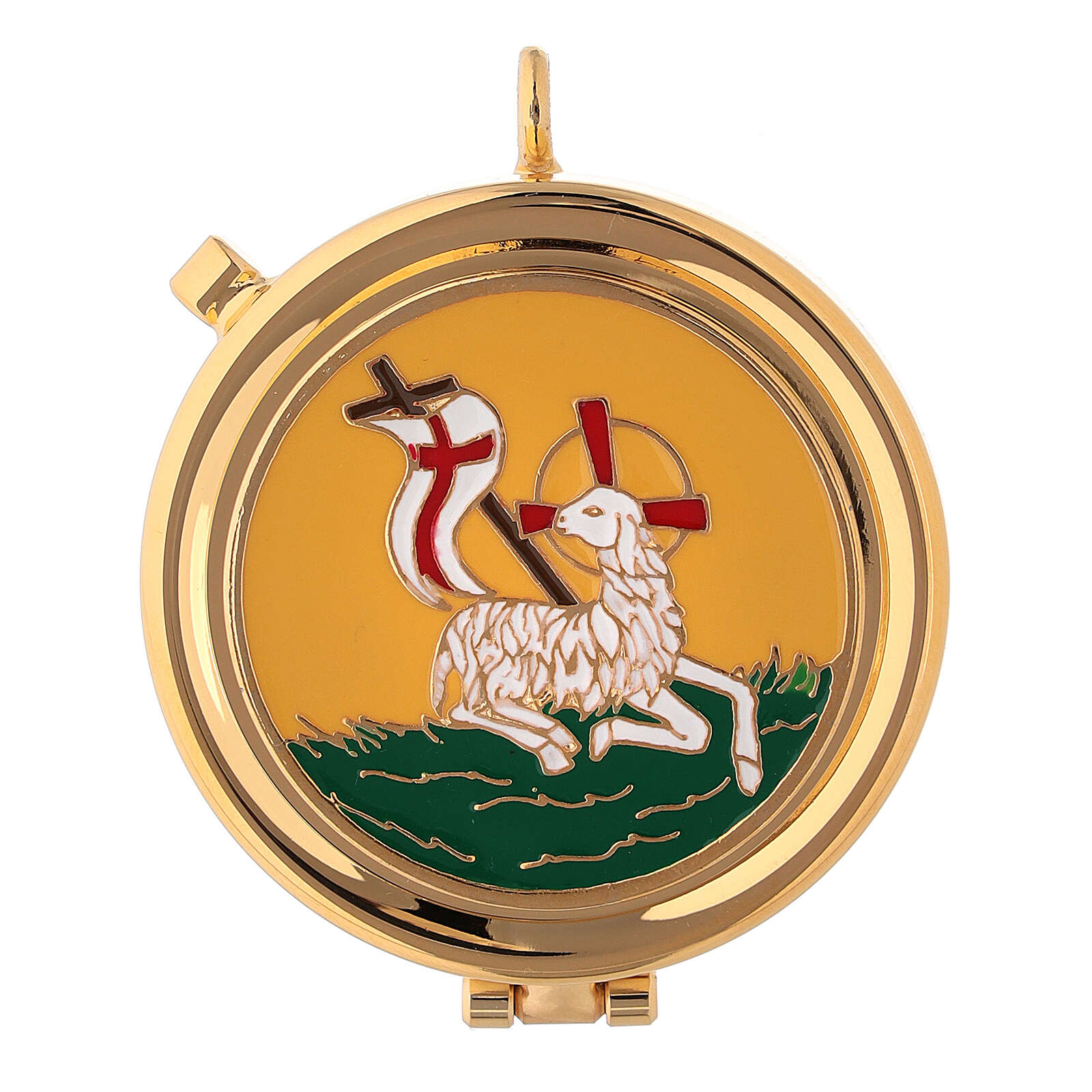 Versehpatene vergoldeten Messing Agnus Dei Emaillack 5.3cm. Versehpatene realisiert aus vergoldeten Messing und verfeinert mit einem Schild mit dem Agnus Dei dekoriert mit Emaillack.