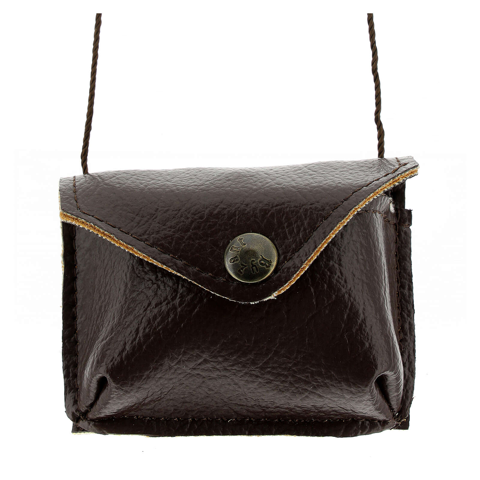 Handgefertigtes Versehpatenen-Etui in braunem Leder, mit Halsband und ohne Ziborium.