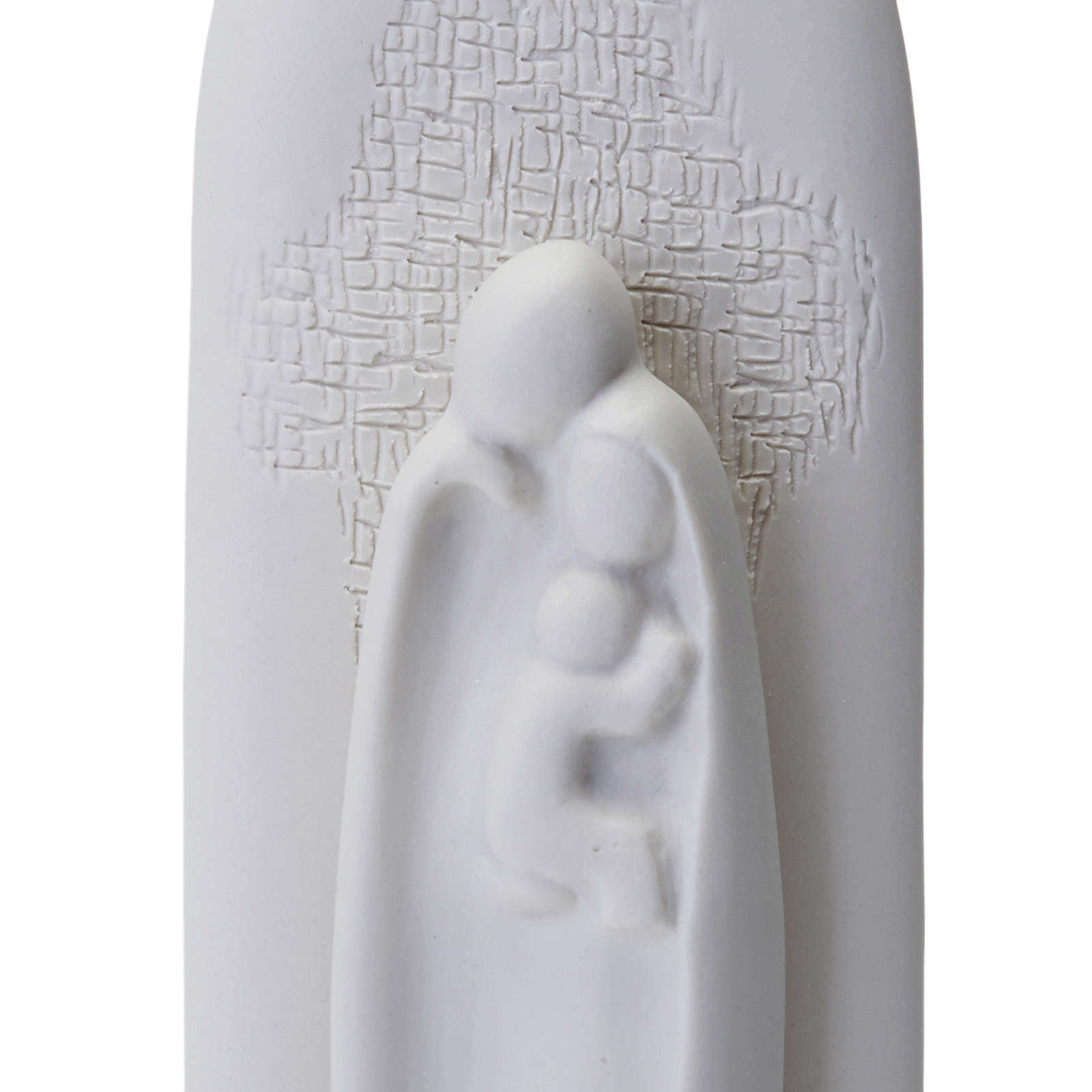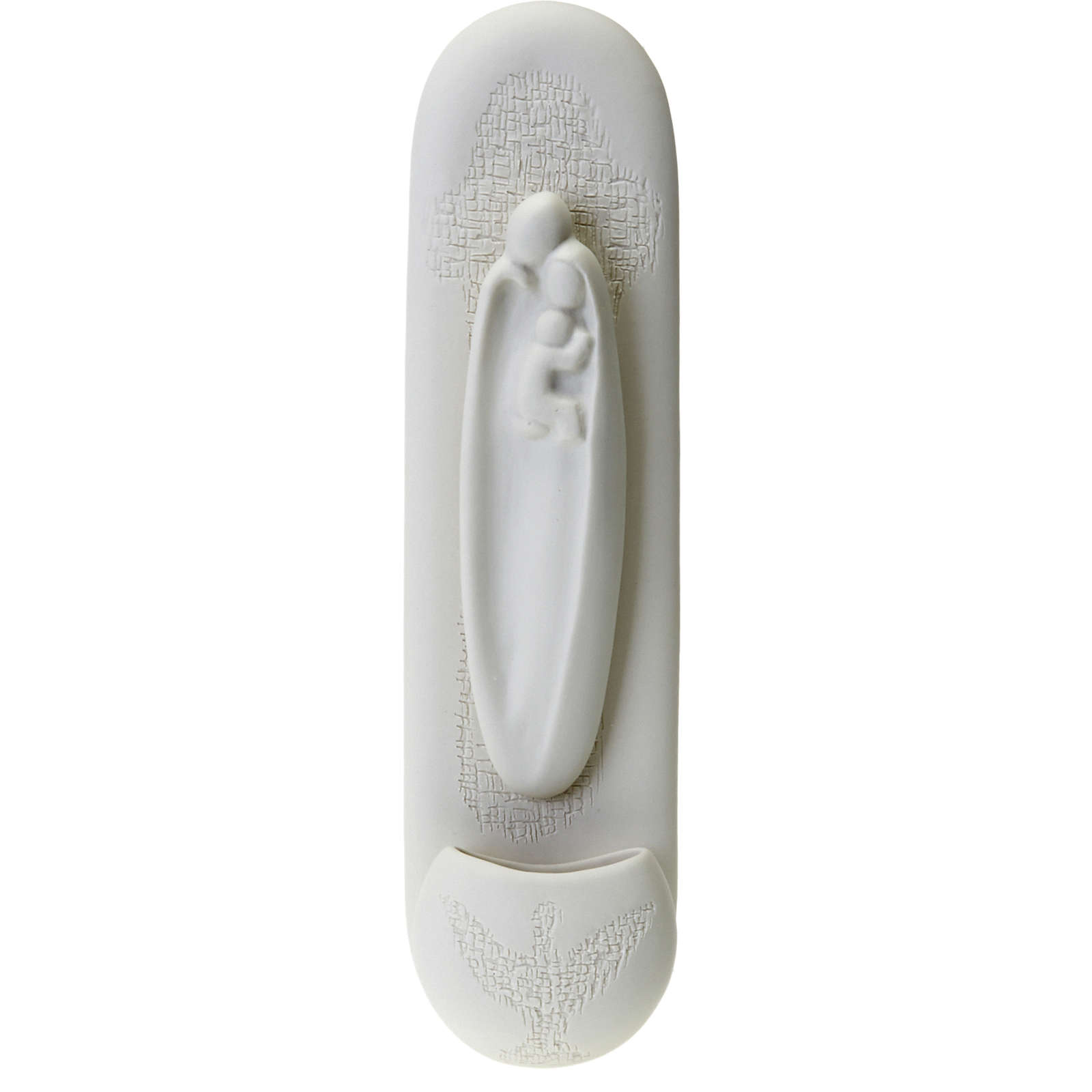 Elegantes Weihwasserbecken aus weißem Porzellan, angefertigt von Franceso Pinton, stellt die Heilige Familie dar.