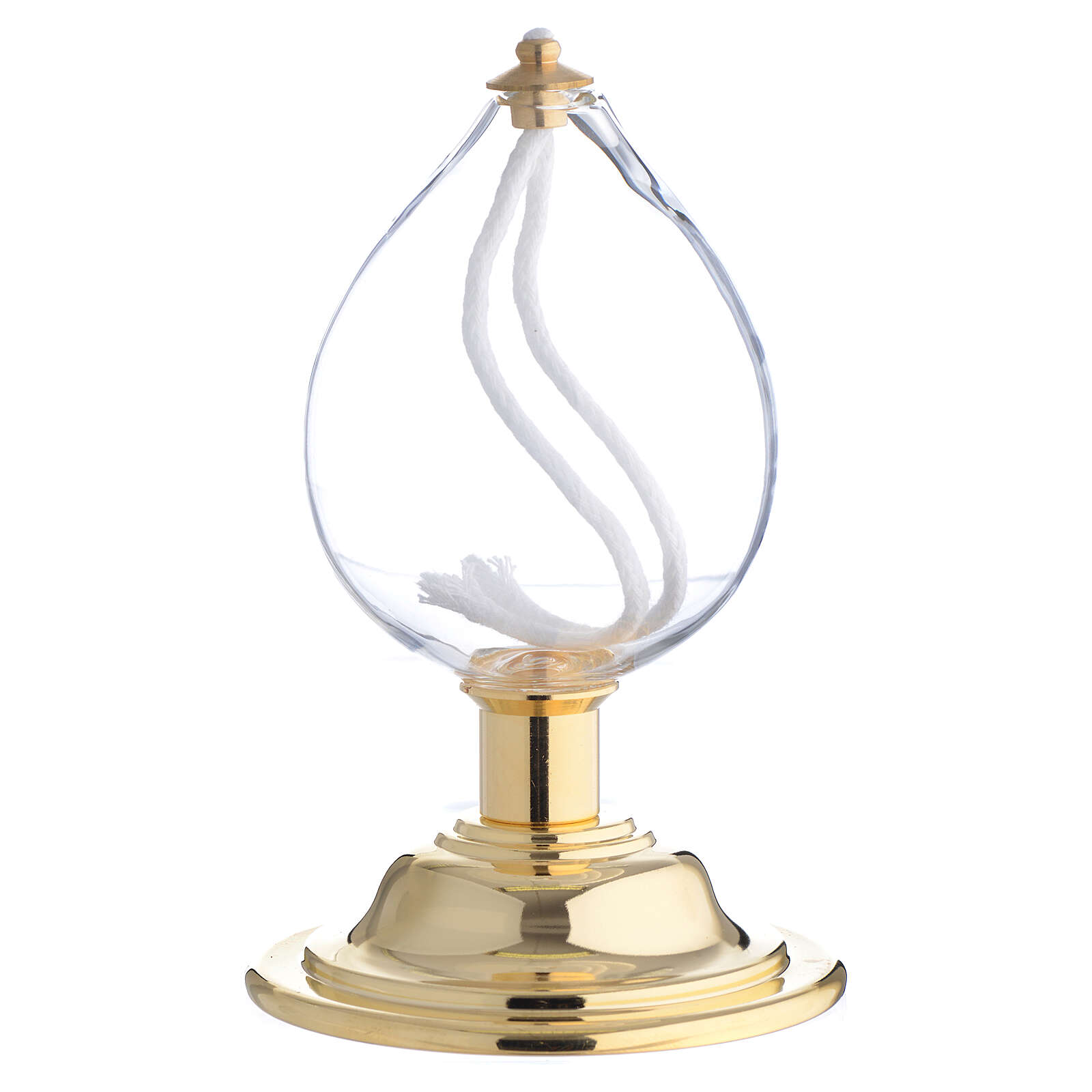 Altarlampe, als Öllampe ausgeführt, Glasaufsatz in Tropfenform auf Messingfuß