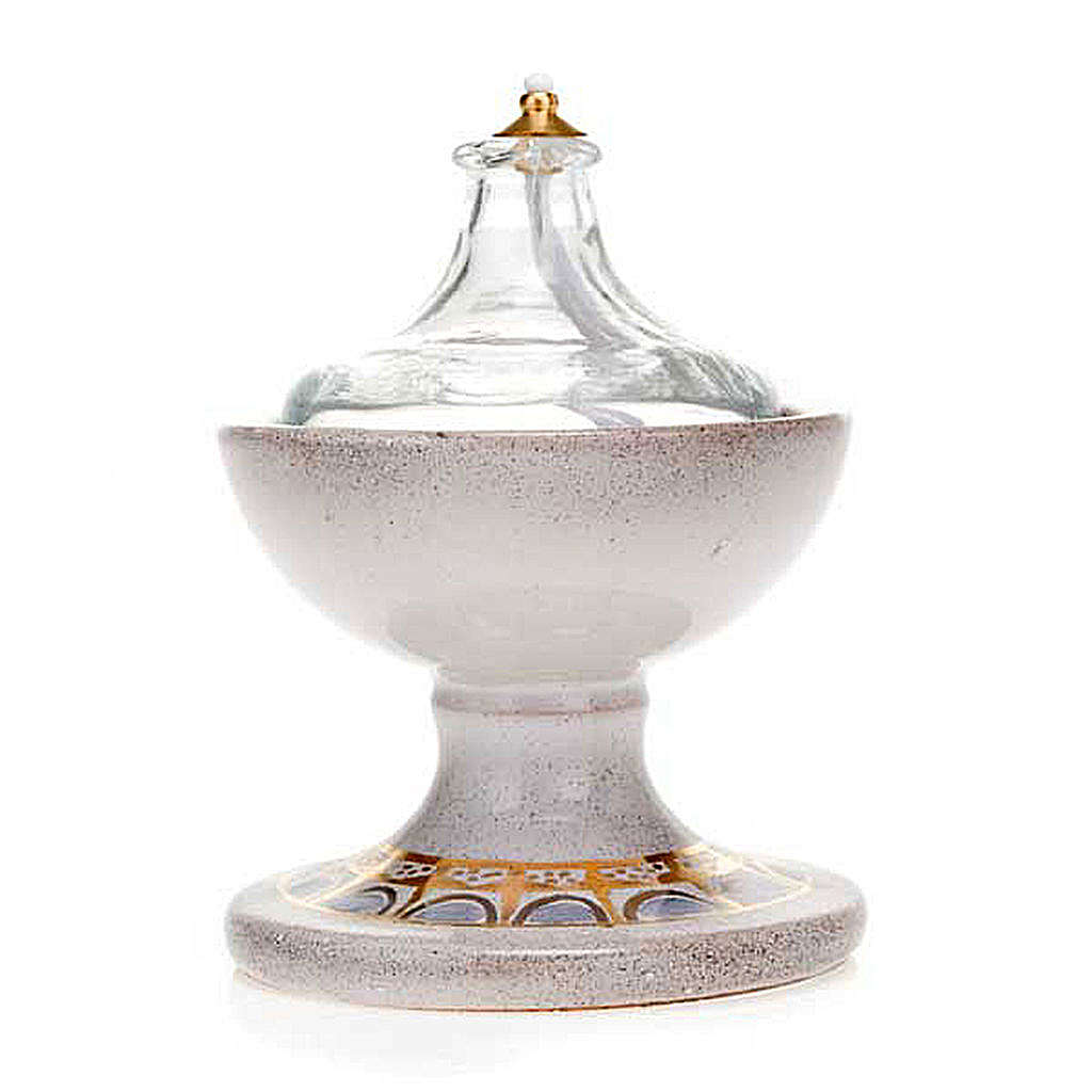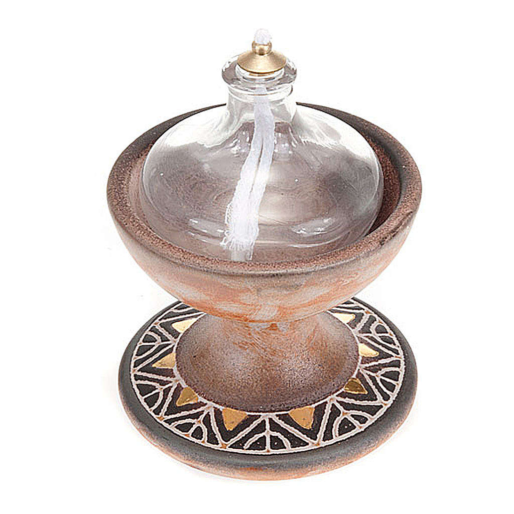 Altarlampe, als Öllampe ausgeführt, mit Standfuß in Kelchform, aus Keramik
