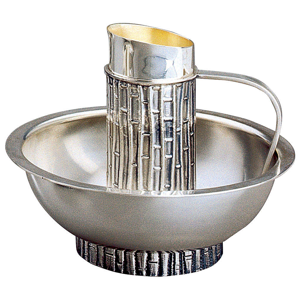Kanne zur Händewaschung und Wasserschale von Molina aus versilbertem Messing