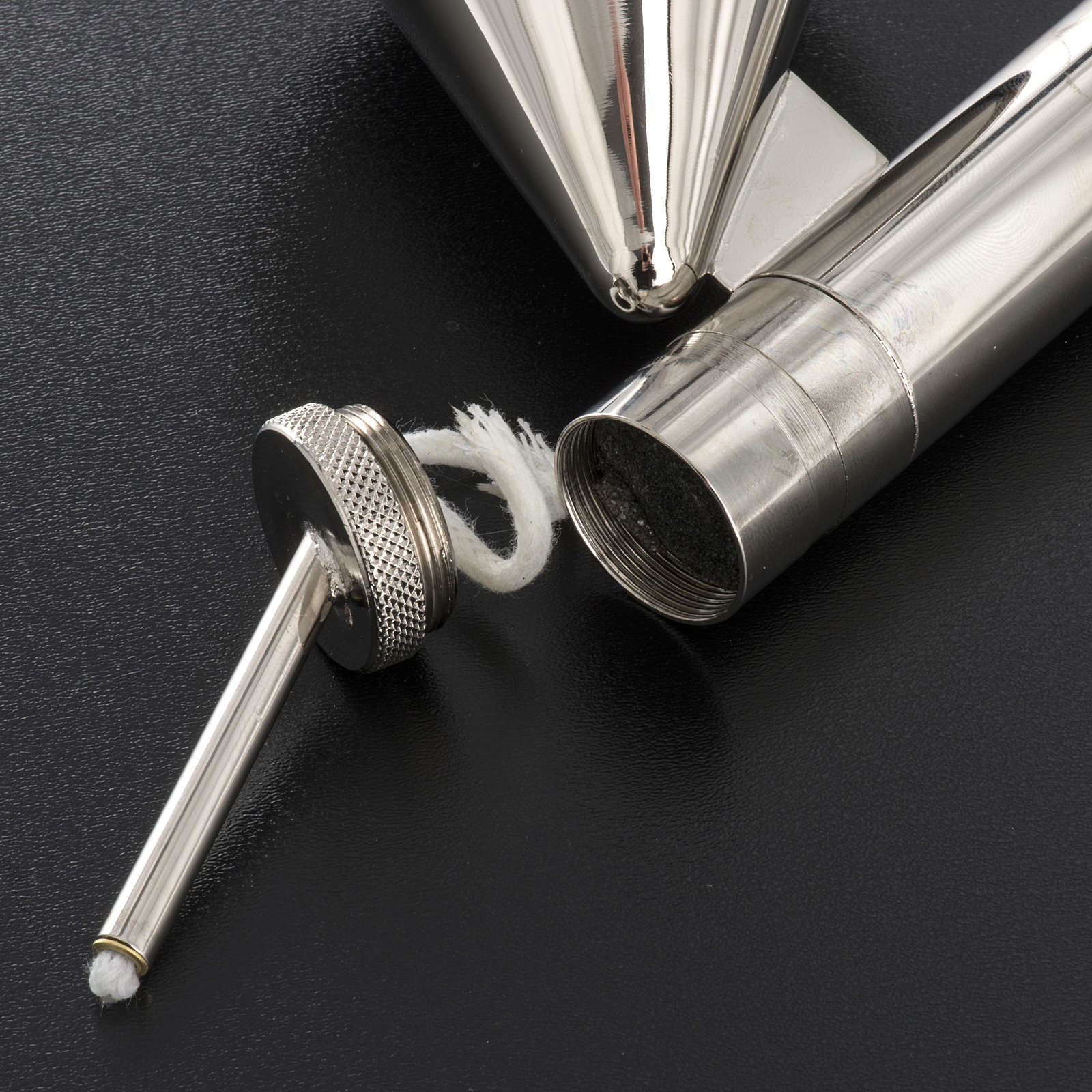 Kerzenanzünder und Kerzenlöscher aus silberweissem Messing,