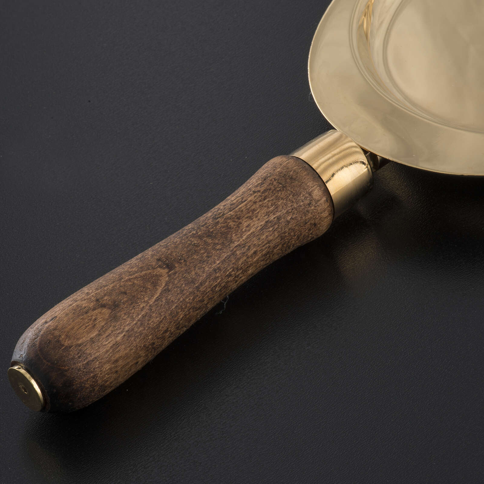 Kommunionpatene, aus Messing, mit Holzgriff