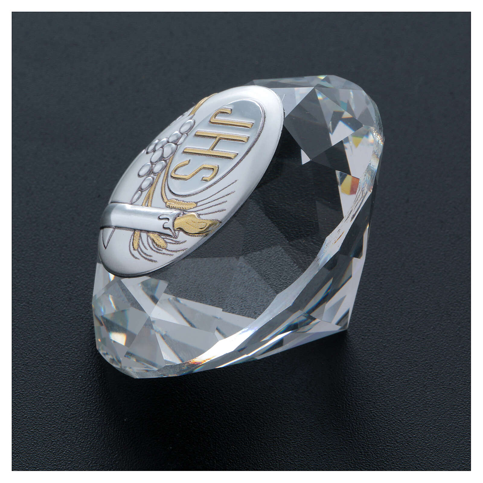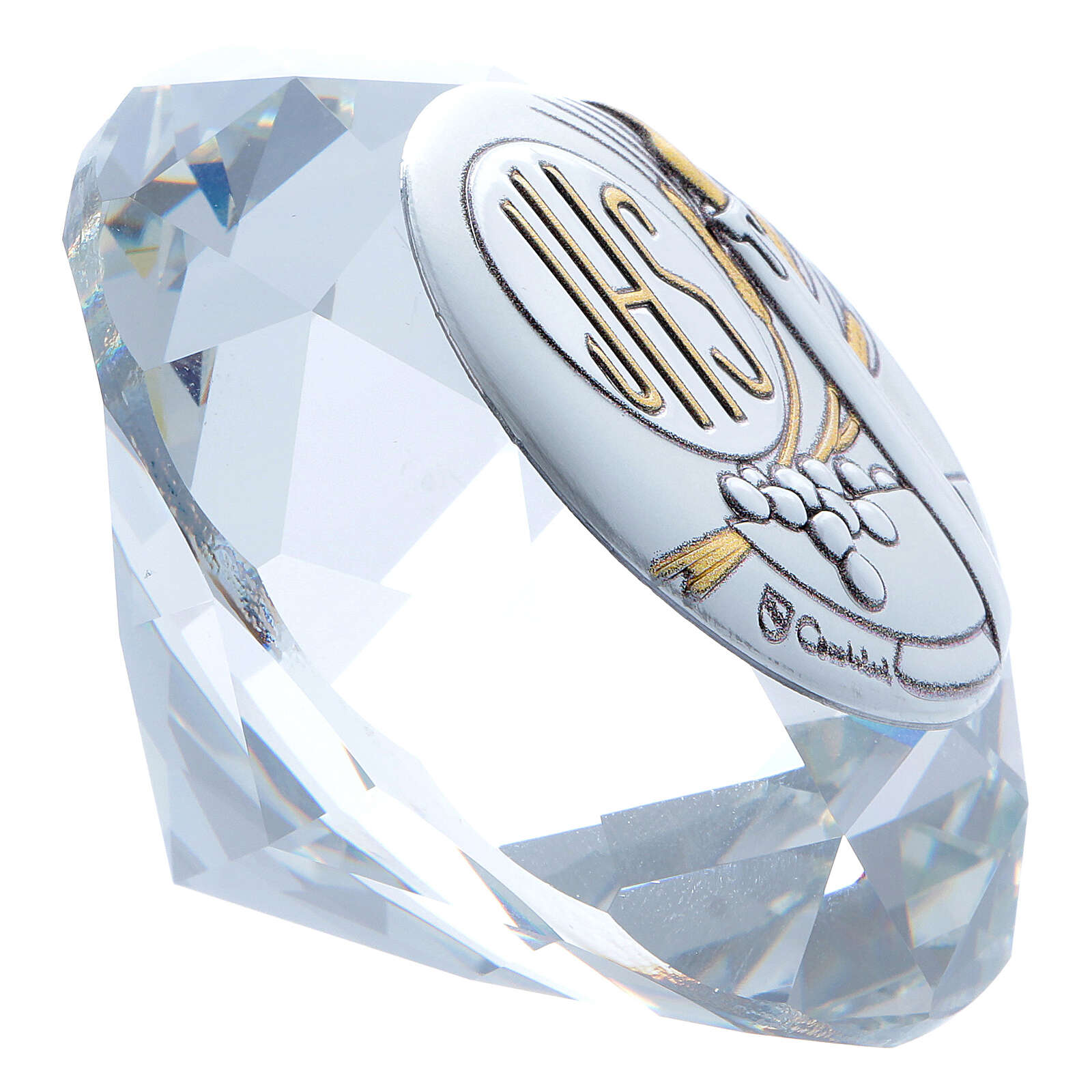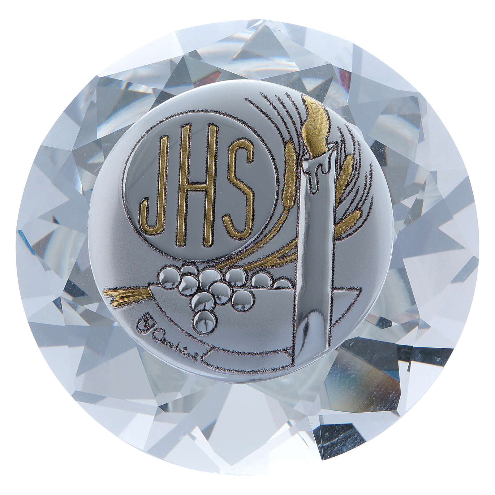 Kristalldiamant mit Aluminiumplakette, Kerzenmotiv IHS, 4 cm