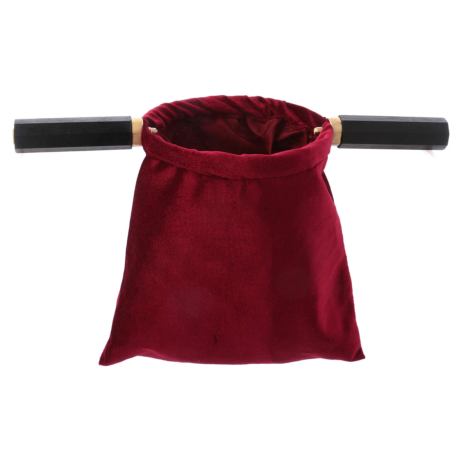 Sack Spende mit Holzgriffen roten Samt. Sack Spende mit zwei Holzgriffen realisiert aus roten Samt.