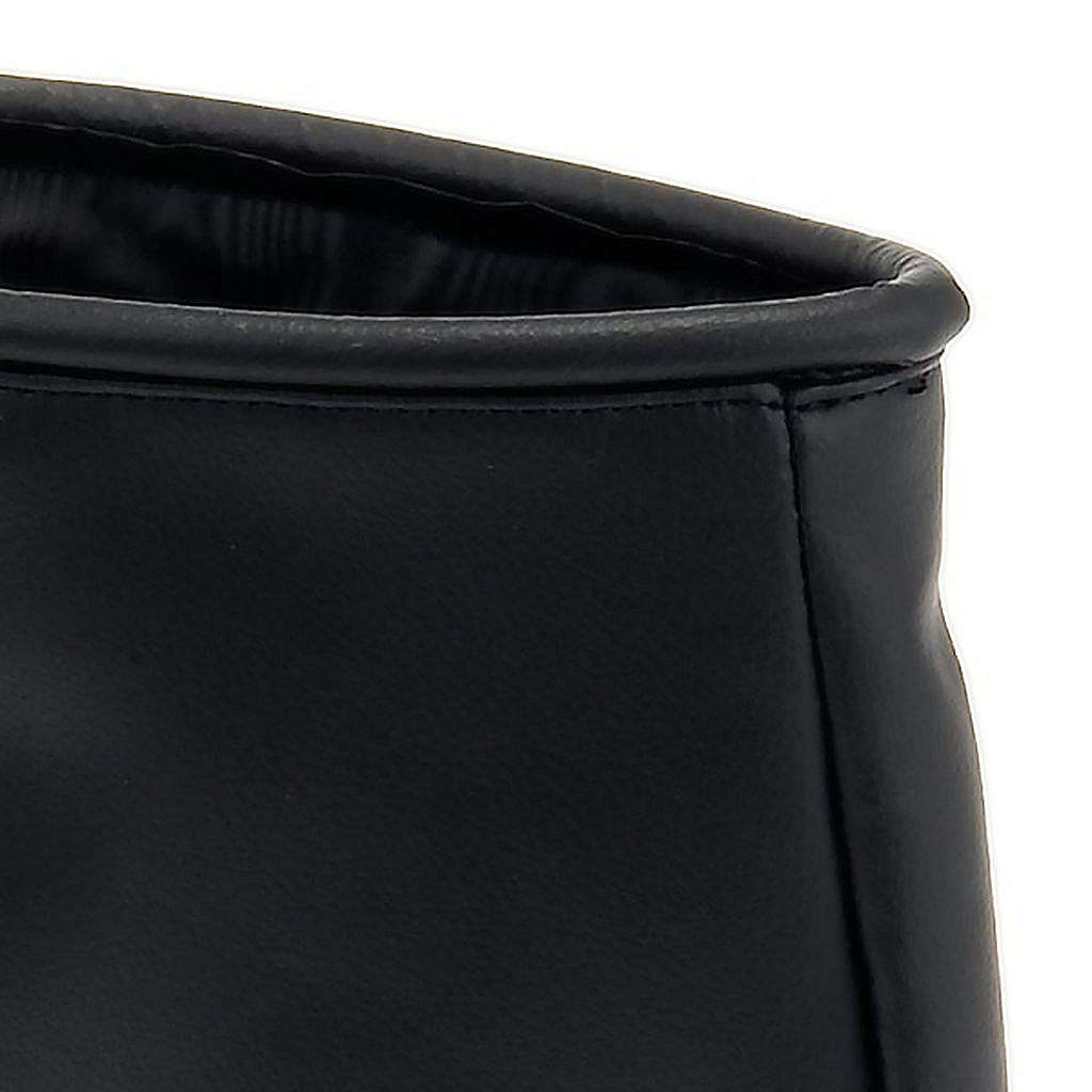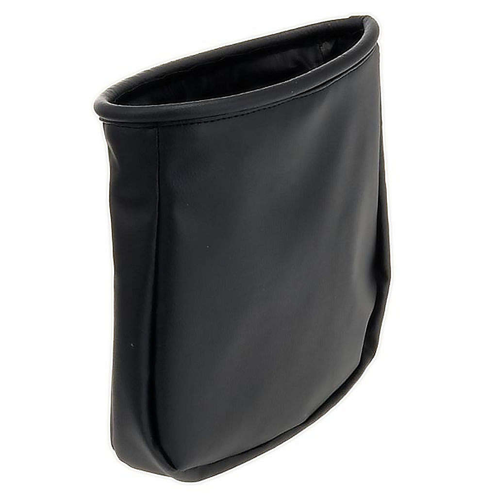 Tasche Spenden aus schwarzem Sky Stoff, elegant. Mit Ansatz für Bügel aus Holz. Auf dem Oberteil ist die Tasche für die Einfügung der Spenden offen.