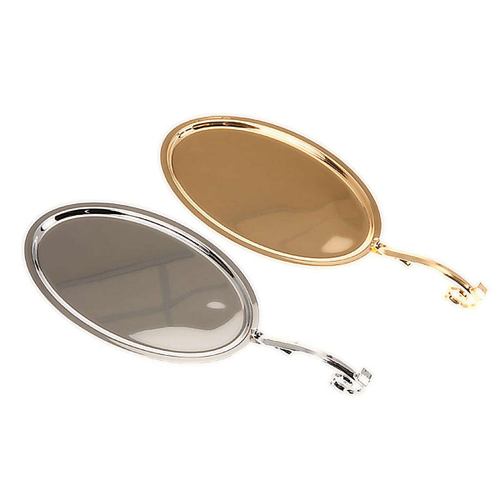 Praktischer, goldfarbener Teller mit Griff für die Eucharestie.