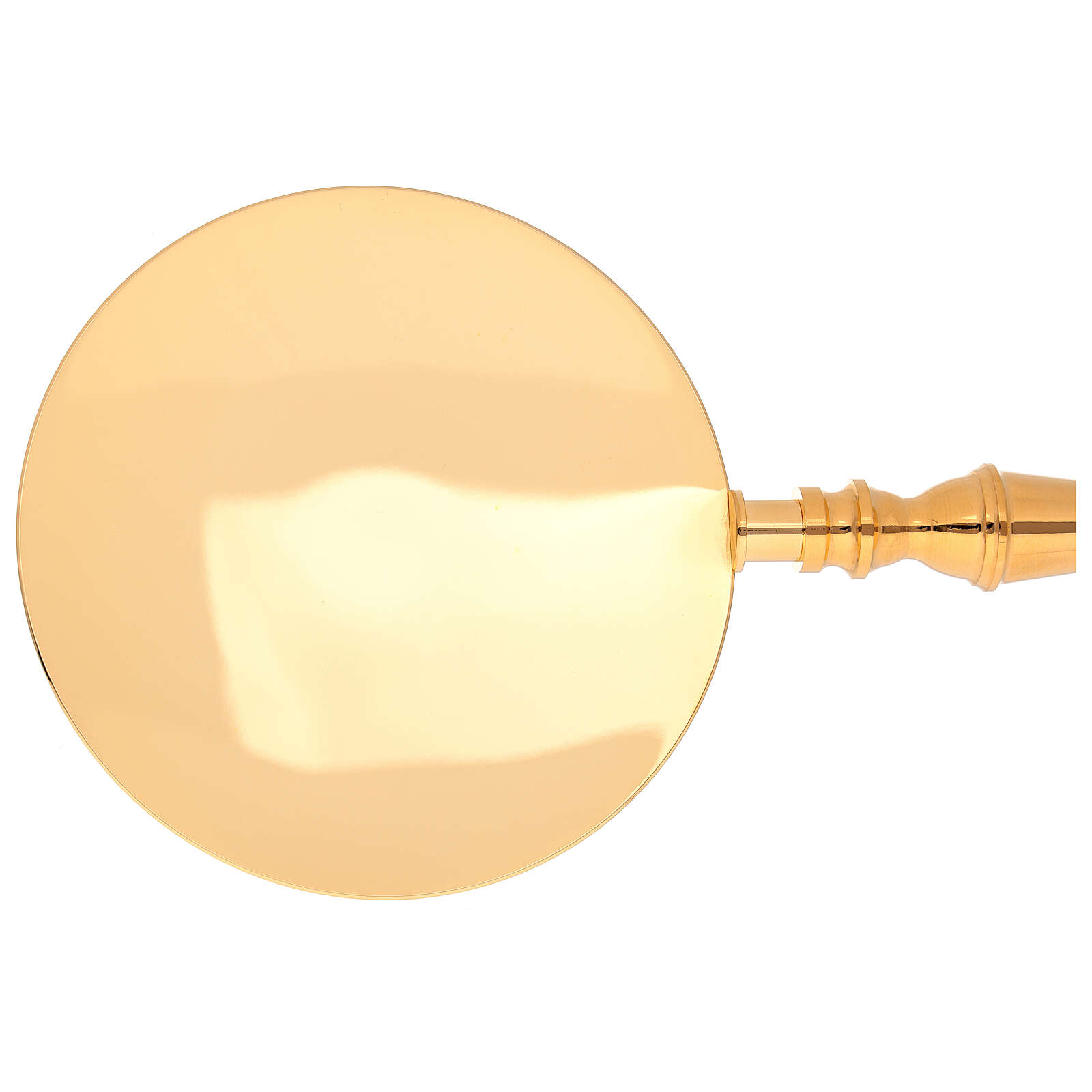 Tellerchen mit Handgriff für Kommunion aus Messing. Tellerchen mit Handgriff für die Kommunion realisiert aus vergoldeten Messing.