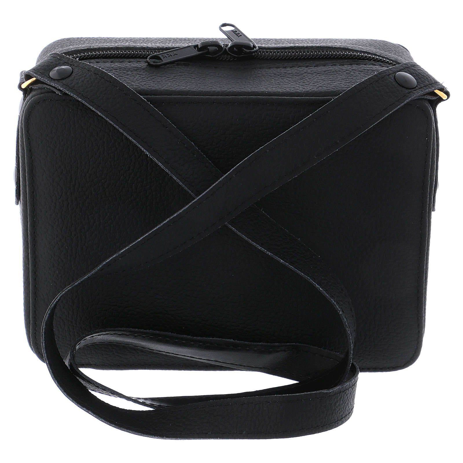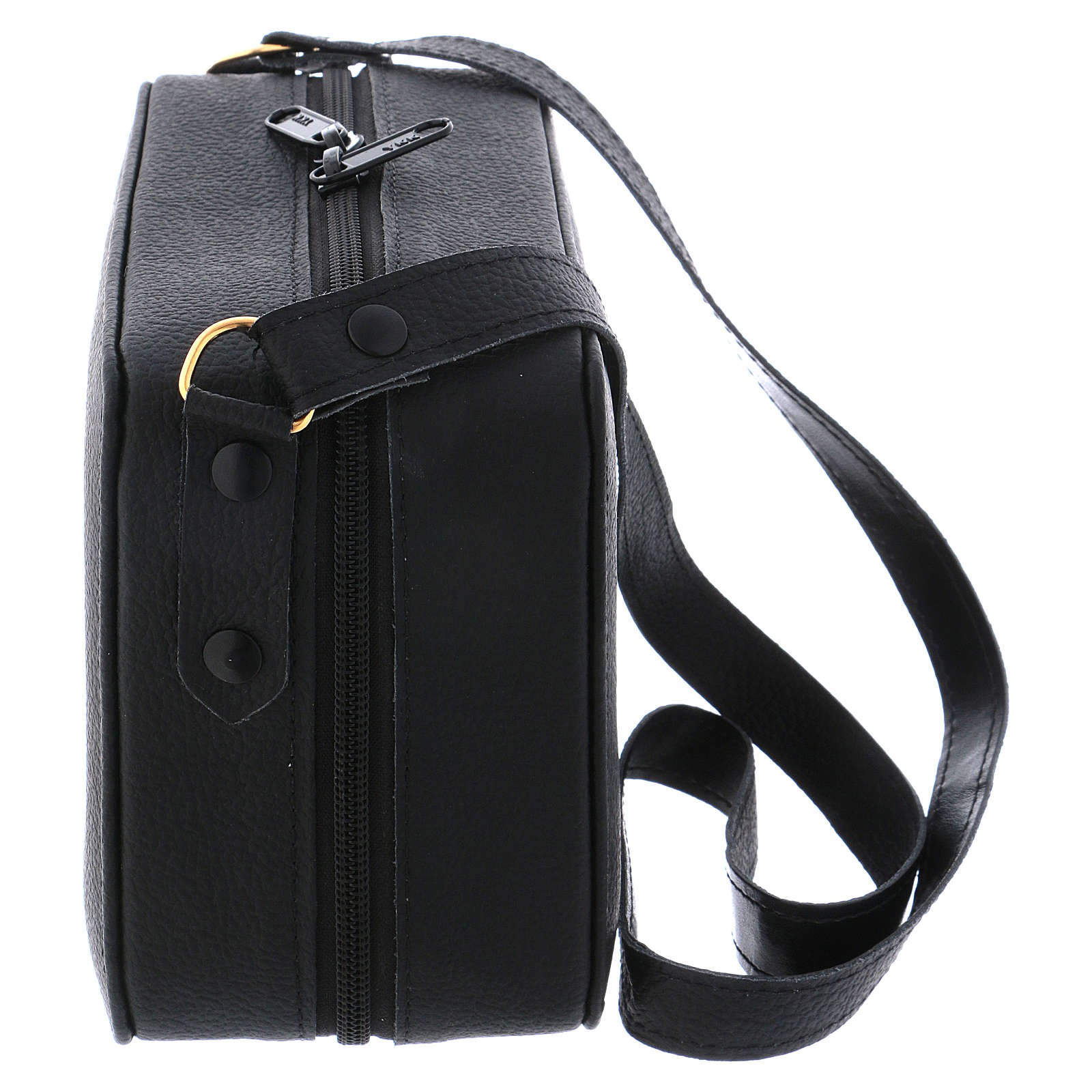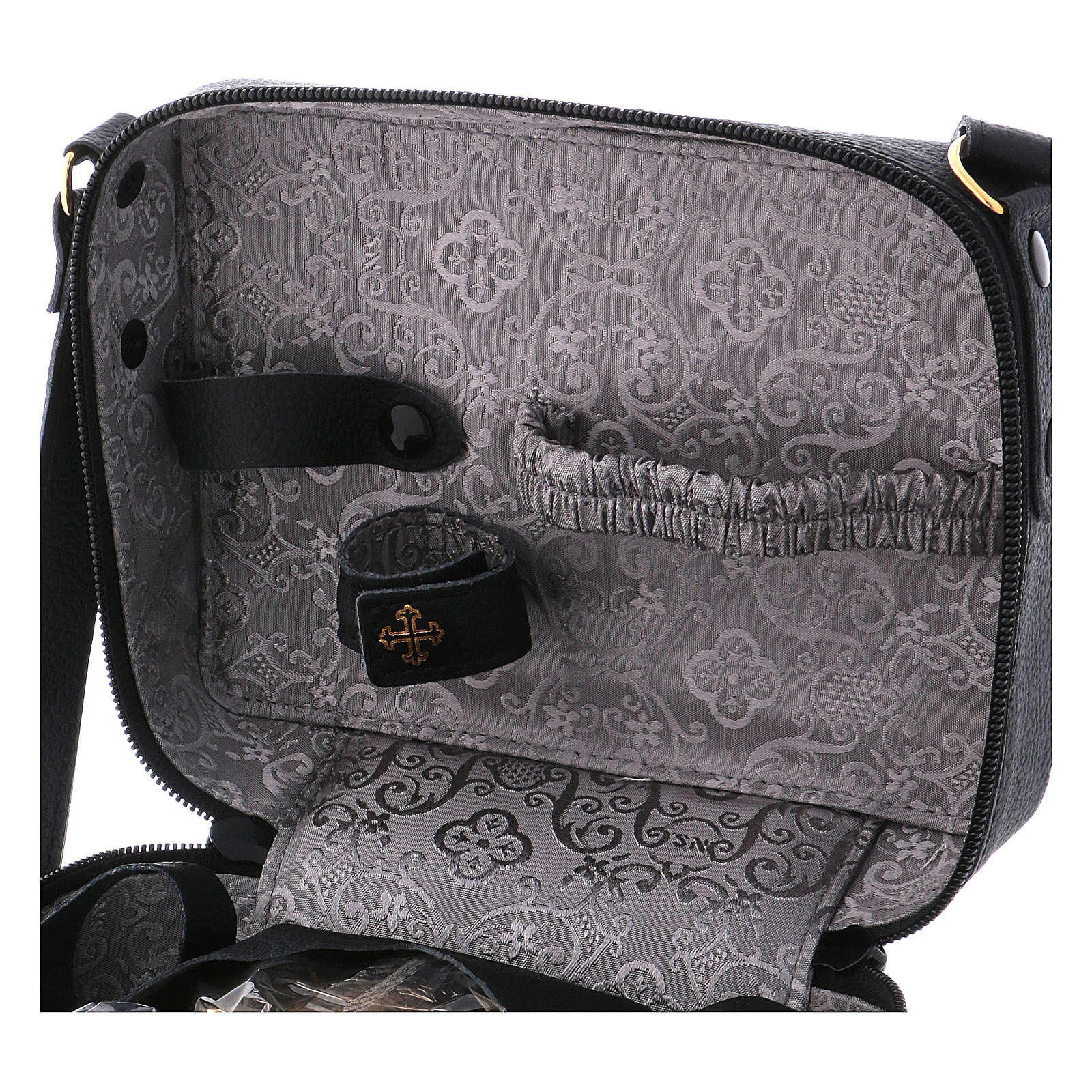 Handtasche für Messe und Feider graue Futter. Handtasche für Priester realisiert aus schwarzen Leder mit grauen Futter und Zubehören für die Messe und die Feier.