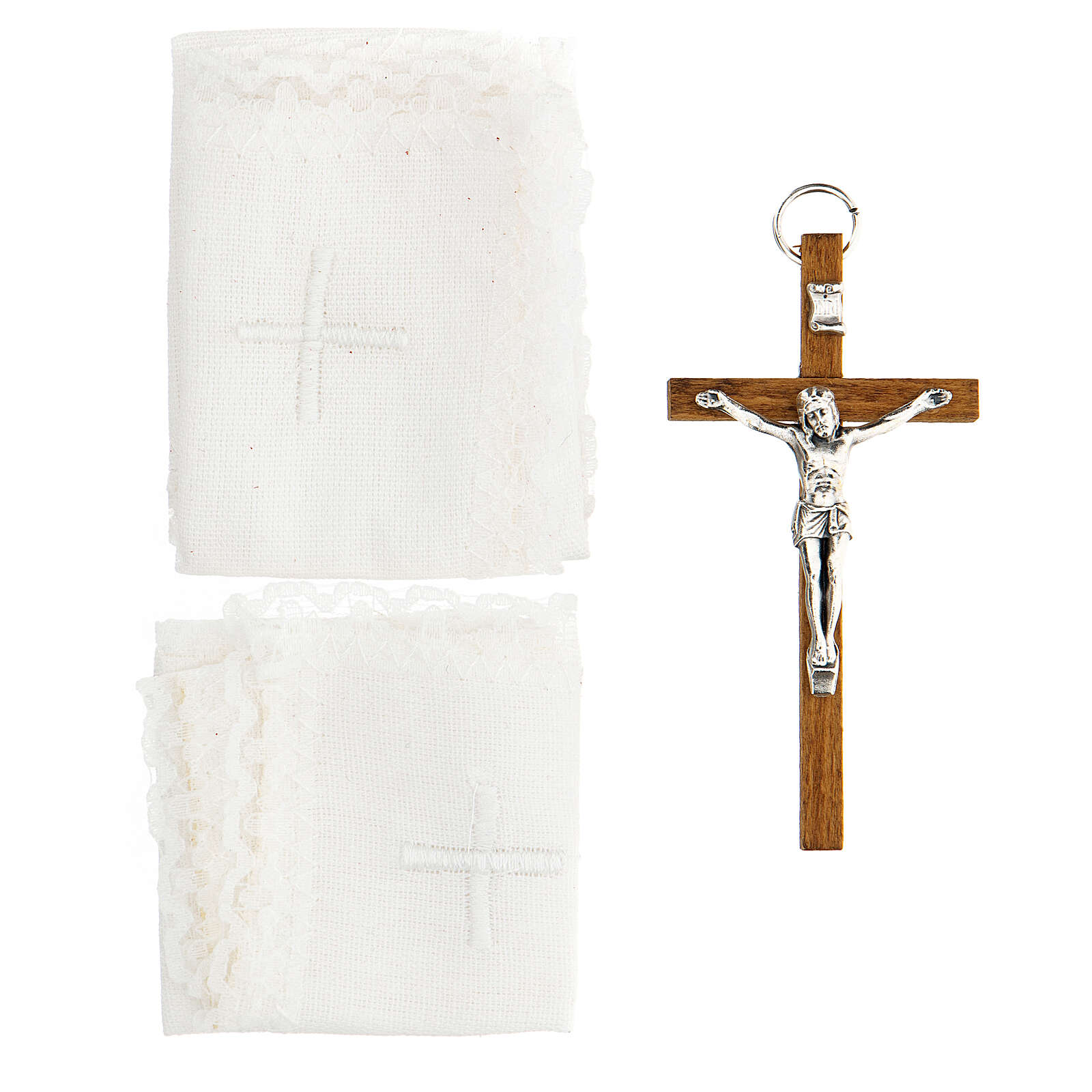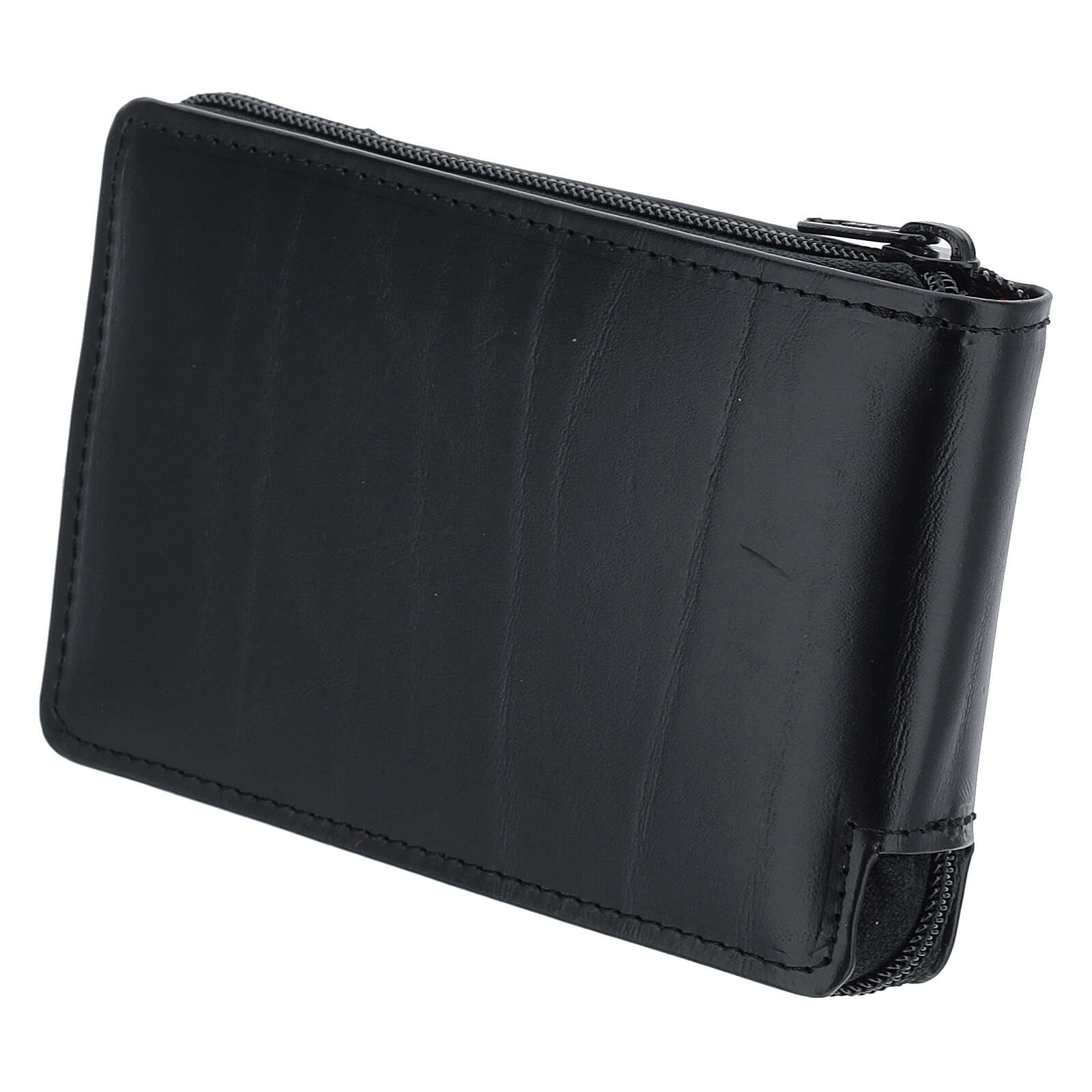 Tasche günstig aus echtem Leder Seehundimitation, für Sterbesakramente. Das Etui ist schwarz draussen und rot drinnen, mit elegantem Reissverschluss.Es besteht aus 6 Stücken: kleinem Zubehörteil für Purifikation, Stola, kleinem Kreuz, Asperges, Reliquiar aus goldenem Metall, Gläschen für Öle.