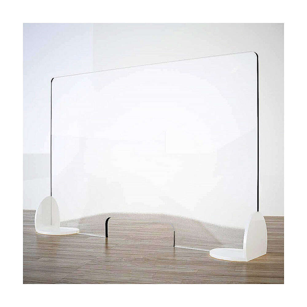 Plexiglas-Tischtrennwand, Modell "Book", Linie Krion, 50x70 cm, mit Serviceöffnung 8x32 cm