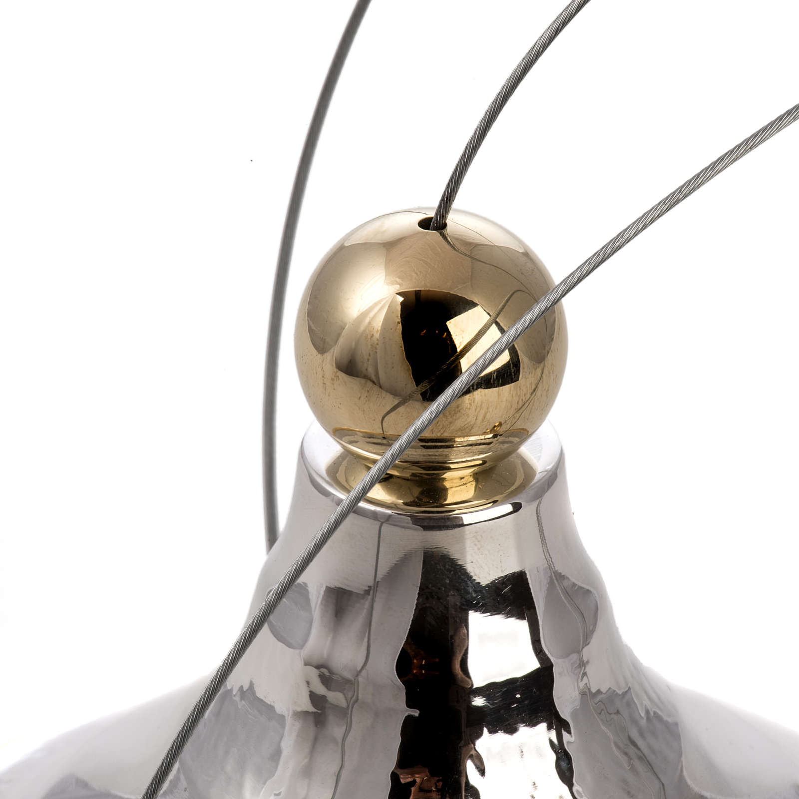 Weihrauchfass Mod. Parvus. Der Weihrauchfass ist aus goldenen und versilberten Messing, und hat Stahlseile.