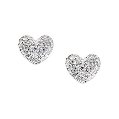 Paar Ohrringe aus 925er Silber mit Rhodium-Finish, leicht gewölbtes Herz. Die Herzoberfläche ist mit einem Pavé aus weißen Zirkonen geschmückt, um ein strahlendes Aussehen zu verleihen.