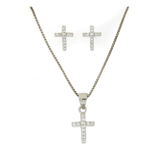 - Set Silber 925 und Zirkonen Ohrringe, Kette und Kreuzanhänger