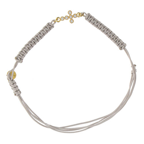 Armband Agios in weißem Faden mit vergoldetem Kreuz und Zirkonen