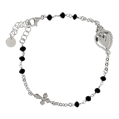 Armband von Agios, Sacro Cuore, 925er Silber, rhodiniert, schwarze Schmucksteine