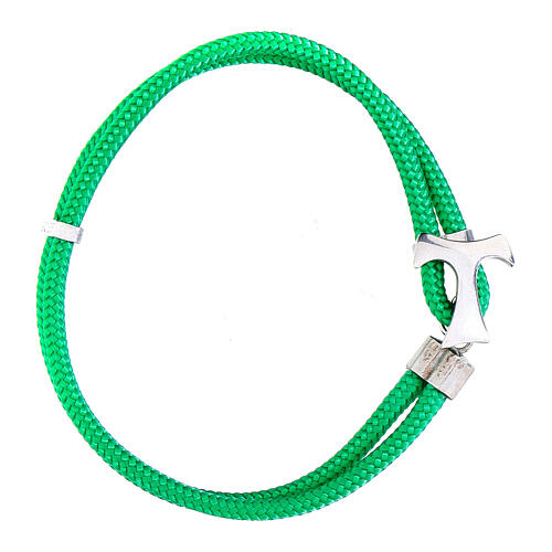 Armband von Agios mit Taukreuz, Material: 925er Silber, grüne Seemannsschnur.