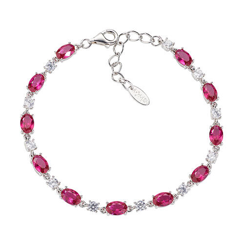 Armband, Amen, Zirkonia weiß und bordeaux, rund und oval, Silber 925 rhodiniert – 16 + 3 cm