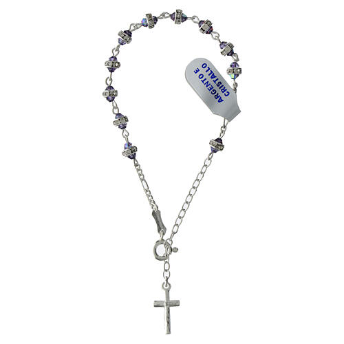 Handgefertigtes Armband in Italien in einer spezialisierten Goldschmiede hergestellt. Dieses Armband ist mit einer Dekade von 4 mm Durchmesser Körnern ausgestattet, jeder gekennzeichnet durch zwei konische lila irisierende Kristalle mit zentraler Strass-Rondelle.