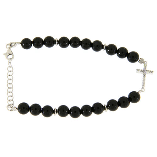 Armband Onyx Perlen Silber 925 Kreuz mit Zirkonen