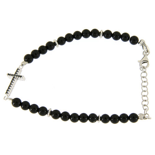 - Armband Onyxperlen 4mm Kreuz Silber 925