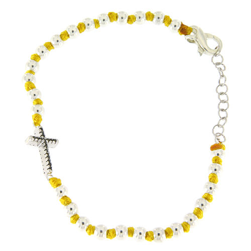 Armband Silber Perlen 3mm Kreuz mi Zirkonen gelb
