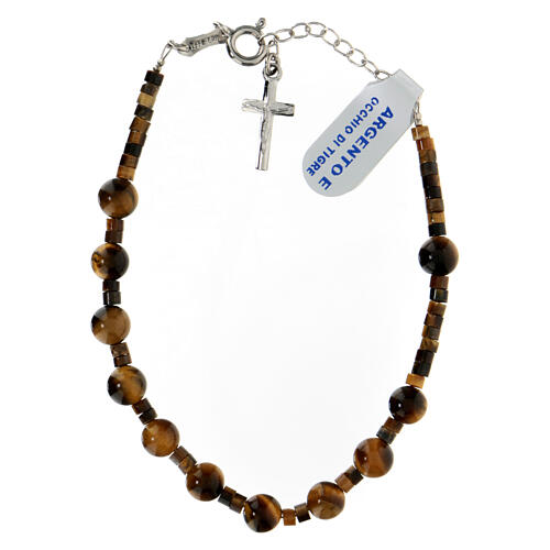 Perlenarmband aus Tigerauge und 925er Silber mit Kreuzanhänger 6 mm.