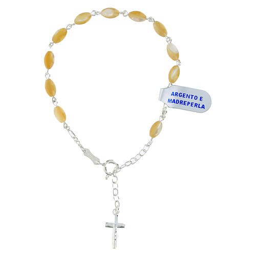 Rosenkranz-Armband aus 925er Silber mit ovalen Perlmutt-Perlen 7 x 5 mm