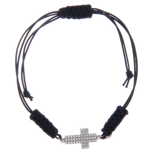 Schwarzer Armband Kreuz Silber 925 und Zirkonen