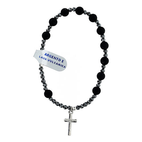 Schwarzes Rosenkranz-Armband mit vulkanischem Lavakreuz und