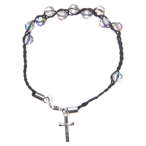 Zehner Armband weisse strass und Silber schwarz. Zehner Armband realisiert aus schwarzen Band mit weissen strass von 6mm, und verfeinert mit einem Silber 925 Kreuz.