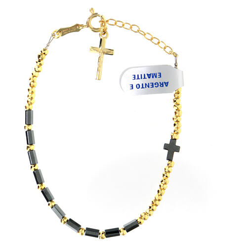 Zehnerarmband 5 mm aus vergoldetem Hämatit und 925er Silber mit Kreuz-Anhänger