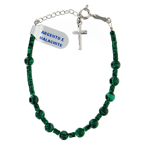 Zehnerarmband mit Malachit-Perlen und aus 925er Silber mit Kreuzanhänger - 6 mm