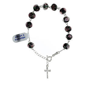 Schwarzes Rosenkranz-Armband mit Rosenperlen und aus Silber 925