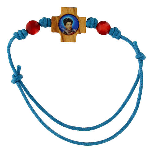 Armband aus blauem Faden Carlo Acutis mit roten Perlen