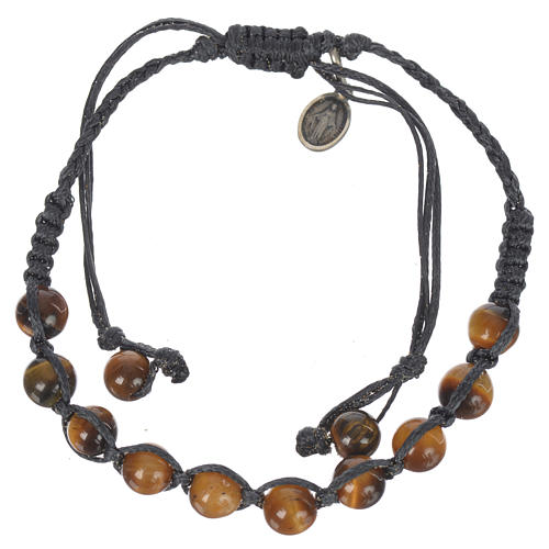 Armband Tigerauge mit Wundermedaille aus Silber 925 und blauer Schnur.