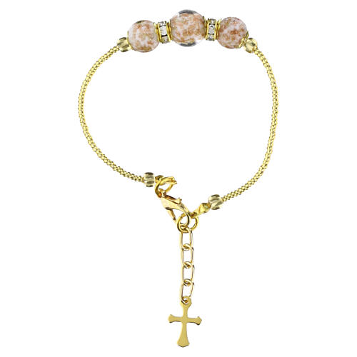 Armband LUCY, Murano-Glasperlen 10 mm in Weiß, goldfarbene Ausführung