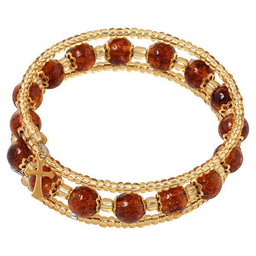 Armband REZZONICO, Armband in Spiralform, Murano-Glasperlen 8 mm in Amber, goldfarbene Ausführung