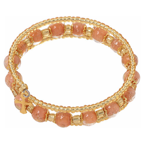 Armband REZZONICO, Armband in Spiralform, Murano-Glasperlen 8 mm in Beige, goldfarbene Ausführung