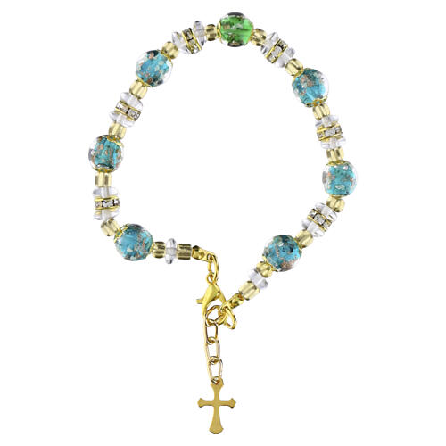 Armband SERENISSIMA, Murano-Glasperlen 8 mm in Grün und transparente Glasperlen, goldfarbene Ausführung