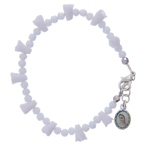 Armband Medjugorjie weißen Rosen Keramik. Armband realisiert mit weißen Rosen aus Keramik, und verfeinert mit einer Medaille mit Bild der Gottesmutter von Medjugorje.