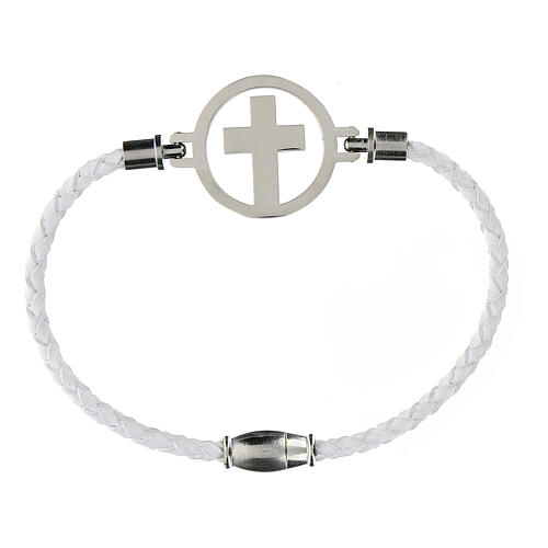 Dieses Armband aus Medjugorje zeichnet sich durch einen Silberring mit einem lateinischen Kreuz aus. Das Lederband ist geflochten und der Verschluss erfolgt per Schraube. Aufgrund der Handarbeit handelt es sich um ein einzigartiges Objekt, das leicht von den Fotos abweichen kann.