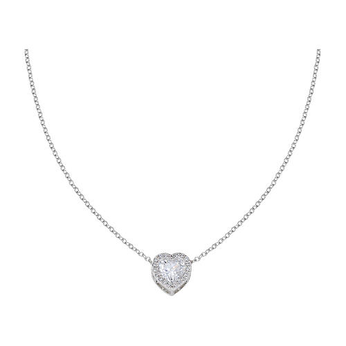 Diese Halskette trägt den Namen der Marke Amen und stammt aus der Amore-Kollektion. Sie besteht aus 925er Silber und hat in der Mitte einen Charm in Herzform mit kleinen Zirkonen entlang der Kanten.