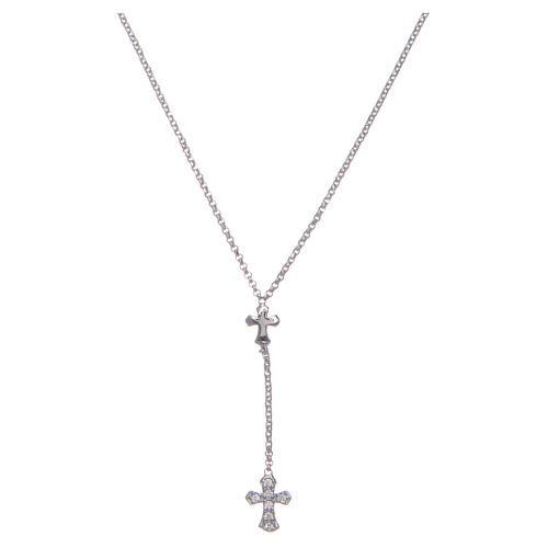 Kette AMEN Kreuzen Silber 925 und Zirkonen. Kette AMEN realisiert aus Silber 925 und verfeinert mit zwei Kreuzen und weissen Zirkonen.