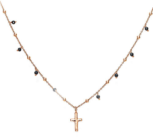 Kette mit Kreuz-Anhänger, Hersteller: AMEN, Material: 925er Silber, Rosé-Finish, schwarze Kristalle.