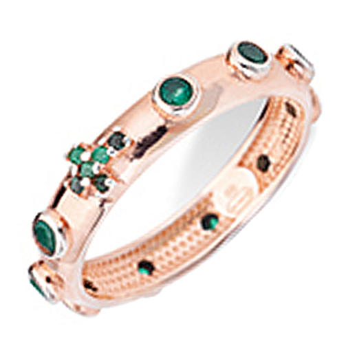 Zehner-Ring AMEN rosa Silber 925 grünen Zirkonen. Ring AMEN realisiert aus rosa Silber 925 und verfeinert mit grünen Zirkonen und einem kleinen Kreuz.