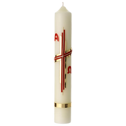 Moderne rote Kerze mit Goldkreuz 40x6 cm.