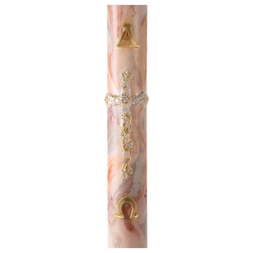 Osterkerze, Alpha, Omega, goldenes Kreuz, weiß-orange marmoriert, 120x8 cm